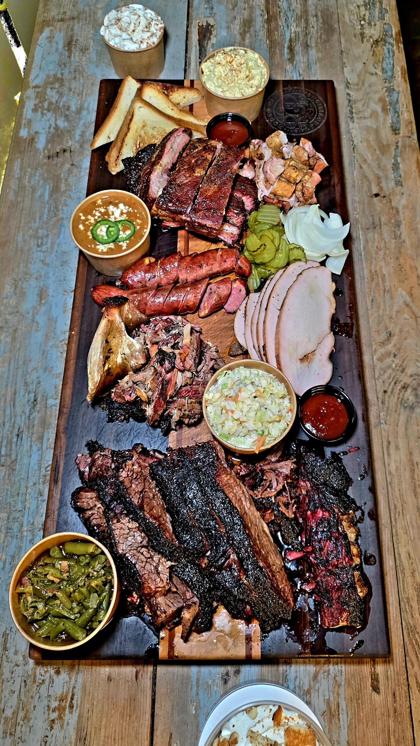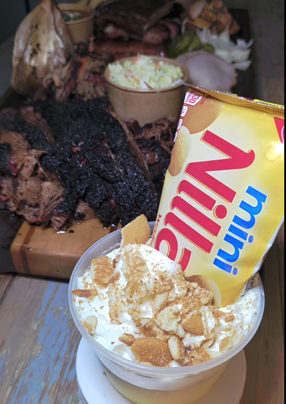 His new spot is already known for its mouthwatering, succulent authentic Texas BBQ and chef-driven sides. They offer bark-o-licious brisket, flavorful ribs, sausage, chicken (whole, half, or quarters), succulent pulled pork, and some of the most moist and juicy smoked turkey you’ll ever taste. They also feature other creative dishes like quesabirria tacos, OMG brisket nachos, chili cheese burritos, brisket mac and cheese, creamed corn with queso, and Southern-style green beans cooked with beef tallow that is #stupiddelicious. And you cannot forget his dangerously delicious banana pudding topped with fresh whipped cream and Nilla wafer crumbles.